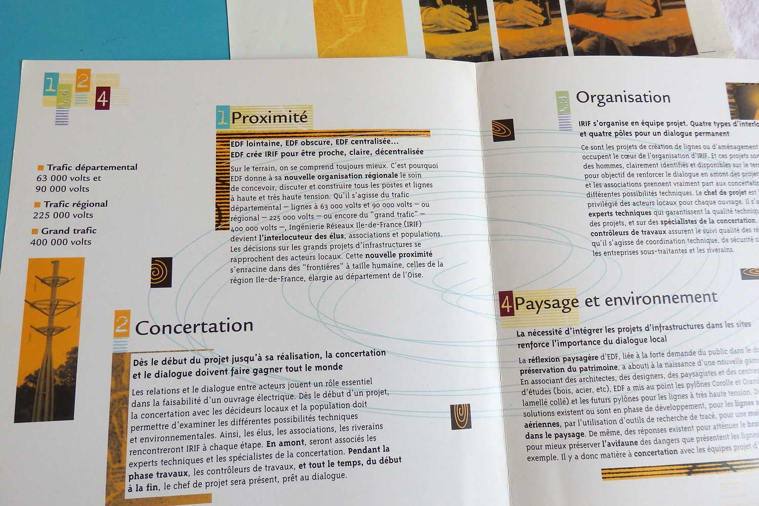 Quand E.D.F. repense la construction de ses réseaux en Ile-de-France, cela se traduit par une plaquette et un dépliant à destination de ses techniciens.