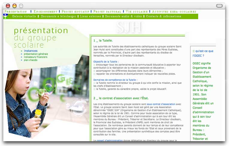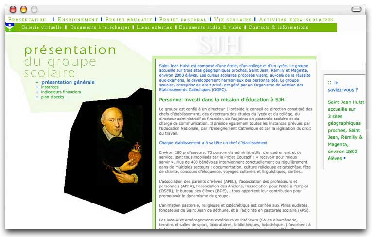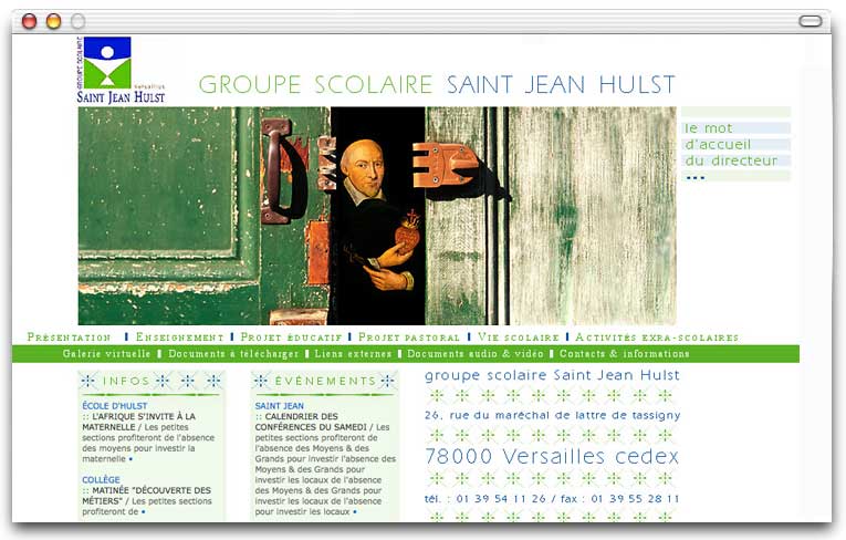 Le groupe scolaire Saint Jean Hulst souhaite créer un site internet en harmonie avec sa charte graphique et son logo en bichromie, vert et bleu.